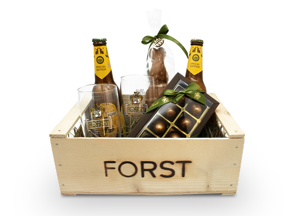 Das FORST Osterbier ist in der 33cl Flasche im Karton à 24, im Basket à 6 oder in der FORST „Souvenir Box“ à 12 erhältlich.