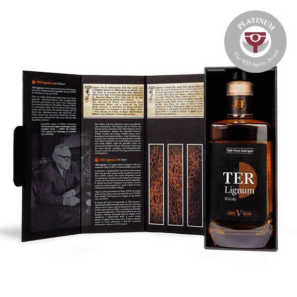 TER Lignum è un viaggio ispirato al passato e alla ricca tradizione di Birra FORST, in memoria dell’Ing. Luis Fuchs. Oggi, in quinta generazione di Birra FORST sta dando prova di una nuova, tenace produttività: è un omaggio al capo birraio Ing. Luis Fuchs. Nasce dal FORST Malt Blend, che viene fermentata secondo l’antica tradizione di Birra FORST e distillata secondo le regole di RONER, per poi essere portata alla gradazione ideale con l’acqua particolarmente morbida di FORST - ovvero TER Lignum. TER Lignum, dal sapore nobile, brioso, affumicato e duraturo, colpisce per gli aromi di malto maturi e una nota amara.
