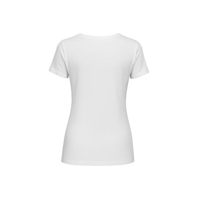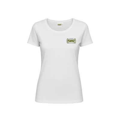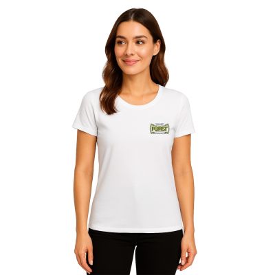 Maglietta bianca da donna con collo in verde e logo FORST stampato, 100% cotone